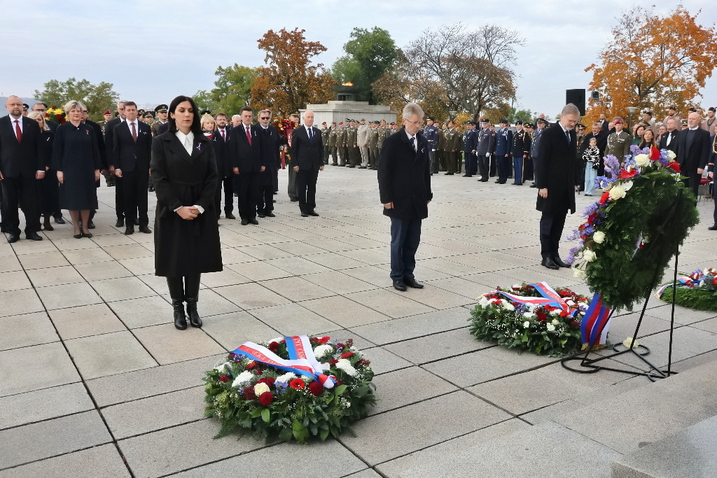 Minutou ticha přítomní uctili padlé československé vojáky, během níž zazněl signál Večerka a čestná salva. Zhruba půlhodinový pietní akt zakončil slavnostní pochod jednotek a průlet dvou stíhaček JAS-39 Gripen, dvou podzvuků L-159 ALCA a také nových amerických vrtulníků systému H-1. Hosté se poté přesunuli do kolumbária, kde položili kytice u hrobu Neznámého vojína.