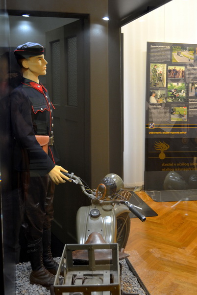 Expozice Vojenské policie ČR přibližuje na relativně malé ploše dějinné události, tradice, významné milníky a události v historii jedné z organizačních složek Československé branné moci a posléze Armády České republiky - Vojenské policie ČR. Návštěvníky seznamuje s jejími počátky spojenými s tehdejším polním četnictvem, s nelehkým obdobím po obou světových válkách, ale i s událostmi spjatými s érou existence v rámci ČSLA. Nechybí ani panely věnované znovuobnovení Vojenské policie po roce 1989, rovněž tak panely zachycující současnost. Pro ni je charakteristická účast příslušníků či ucelených jednotek VP v novodobých zahraničních operacích. Představena jsou jednotlivá teritoriální velitelství, struktury a složky VP, služby a schopnosti VP. Autentičnost expozice dotvářejí originální sbírkové předměty zapůjčené z bohatých fondů Vojenského historického ústavu Praha či osobní artefakty věnované příslušníky VP.