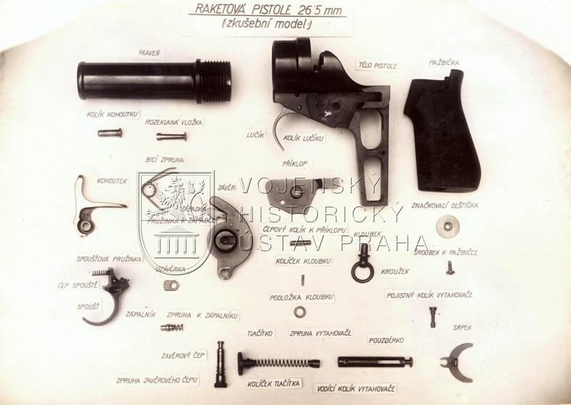 Česká zbrojovka ve Strakonicích se o výrobu signálních pistolí začala zajímat již v roce 1922, avšak předmětem jejího zájmu byly pistole, požadované tehdejším vzduchoplaveckým odborem MNO. Po zavedení vzoru 28 v ráži 34,5 mm do výzbroje letectva, obrátila továrna pozornost na konstrukci signální pistole pro pozemní vojsko. Konstruktér František Myška (1899–1983) navrhl uspořádání se záklopkovým otočným závěrem, stejné konstrukce jako u vzoru 28, avšak v obvyklé ráži 26,5 mm, kolmou rukojetí a možností rozložení celé zbraně bez použití nástrojů. Spoušťový a bicí mechanismus chránila odklopná bočnice, zajištěná dvouramenným kolíkem. Vytahovač nábojnic plnil zároveň funkci aretace hlavně a při stlačení vytahovače bylo možné hlaveň vyšroubovat z těla pistole. Práce na konstrukci zahájil v polovině roku 1929 a v říjnu dostala továrna objednávku na 20 zkušebních raketových pistolí v ceně 14 000 Kč, jež předložila Vojenskému technickému ústavu (VTÚ) v únoru 1930.