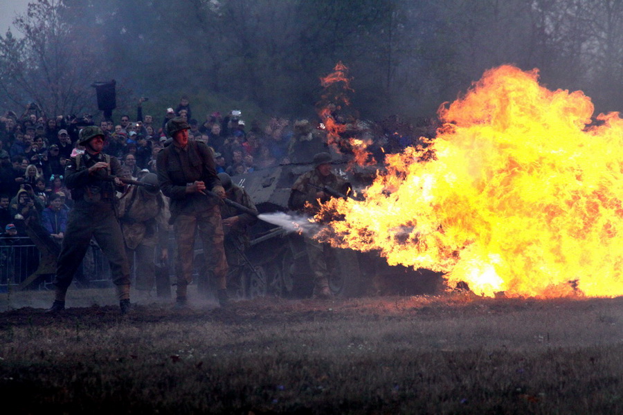 Druhou část programu 16. Tankového dne tvořila bitva, která zobrazovala střet vojáků německé a americké armády během druhé světové války. Bez nadsázky lze říct, že šlo o nejefektnější a nejrozsáhlejší bitevní ukázku, jakou lešanská arény v posledních rocích viděla. Podíleli se na ní desítky vojáků – příslušníků klubů vojenské historie, v akci byla více než desítka těžkých vojenských vozidel a střílelo se z mnoha zbraní. Nejen z ručních, ale ke slovu se dostala i německá lehká polní houfnice 105 mm či kanón z amerického stíhače tanků Jackson.