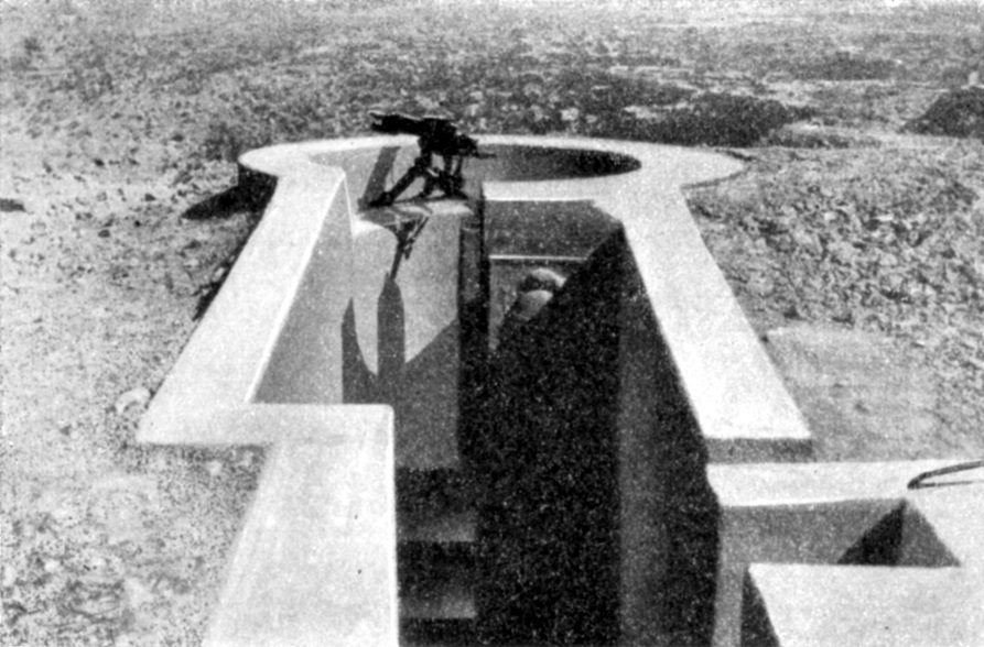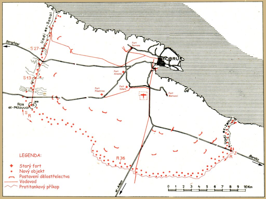 Libye. Tripolsko, Kyrenajka a Fezzán. Země mezi Saharou a Středozemním mořem. Ve starověku obilnice Středomoří, v sedmém století po Kristu dobyta Araby. Do dvacátého století vstoupila jako zanedbaná provincie Turecké říše, dobytá v letech 1911 a 1912 Itálií. Nárůst mezinárodního napětí ve třicátých letech vedl k opevňovací horečce i v severní Africe. Francouzi na hranici mezi Tuniskem a Libyí vybudovali Marethskou linii, miniaturu Maginotovy linie ze železobetonových pevnůstek. Britové v případné obraně Egypta počítali především s mobilními jednotkami, nicméně i oni na hranici Egypta s Libyí natáhli „drát“, pás protipěchotních překážek, propletených ostnatým drátem, střežený obrněnými automobily. Na rozdíl od obou sousedů, Italové opevňovali v Libyi především pozemní fronty kolem nejdůležitějších přístavů. Jednak to bylo laciné a navíc, vlastní stotisícová armáda v Libyi jim dodávala pocit bezpečí.