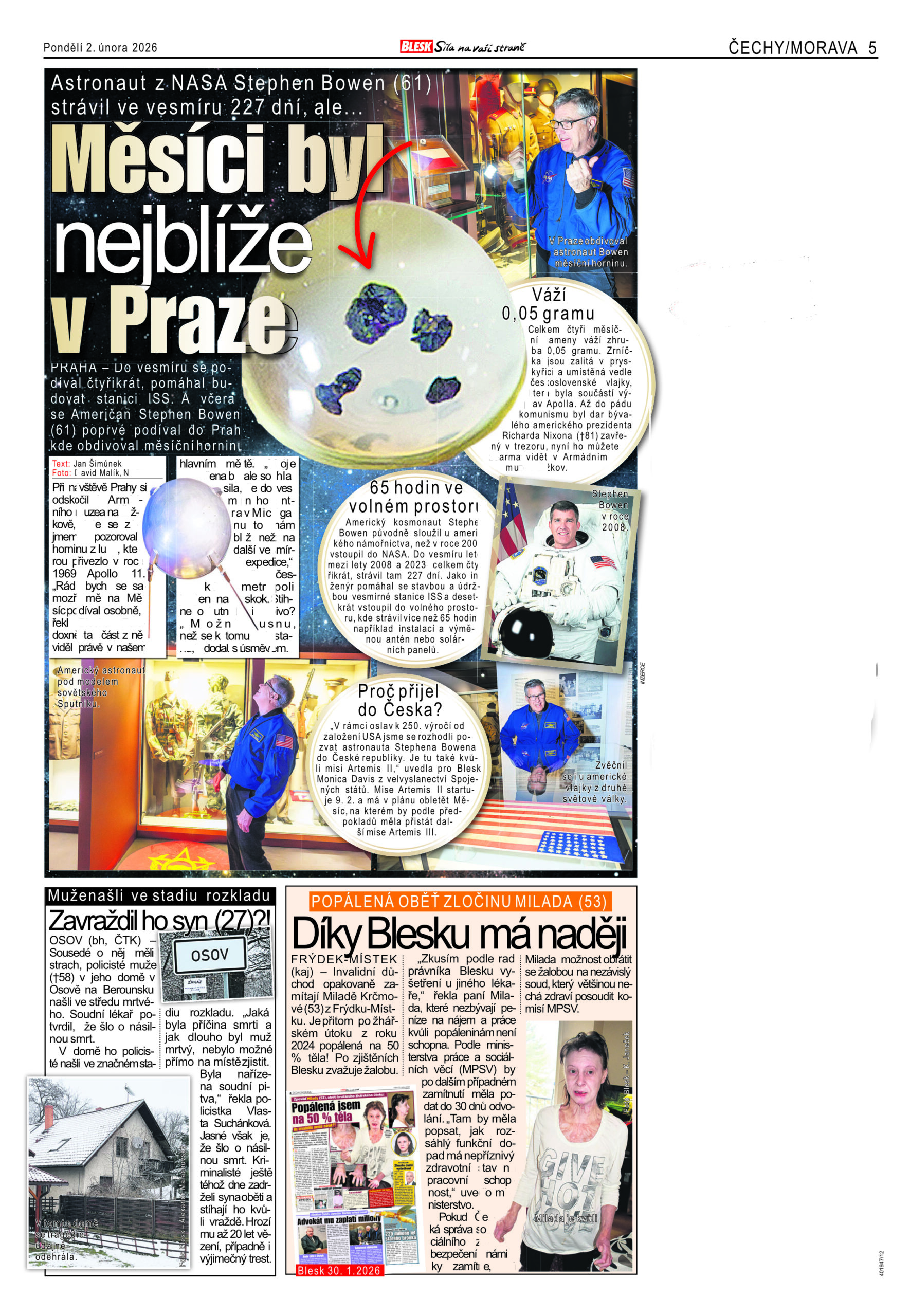 3. února 2026 - Blesk.cz - Astronaut z NASA Stephen Bowen (61) strávil ve vesmíru 227 dní, ale Měsíci byl nejblíže v Praze