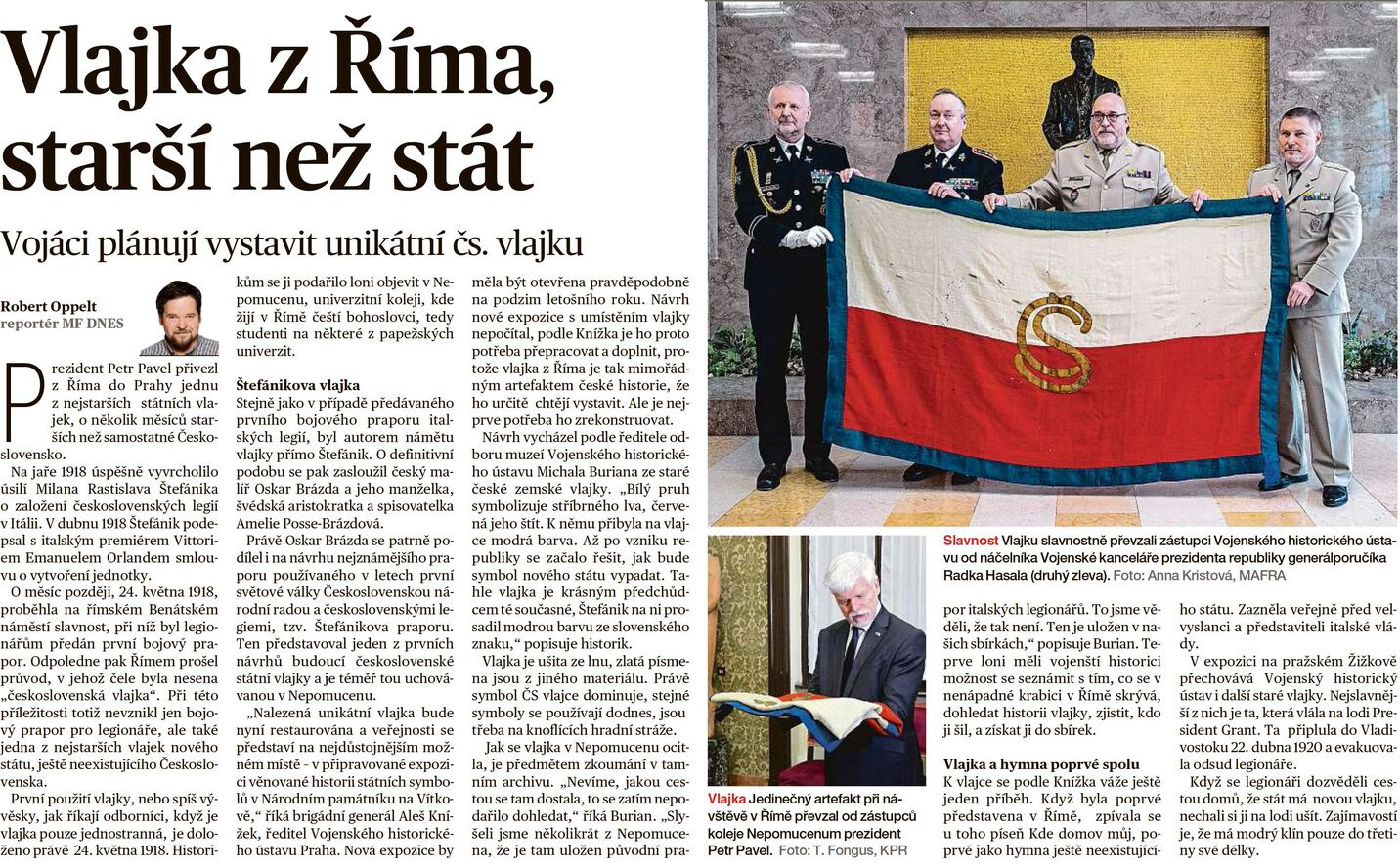 30. ledna 2026 - MF DNES - Vlajka z Říma, starší než stát