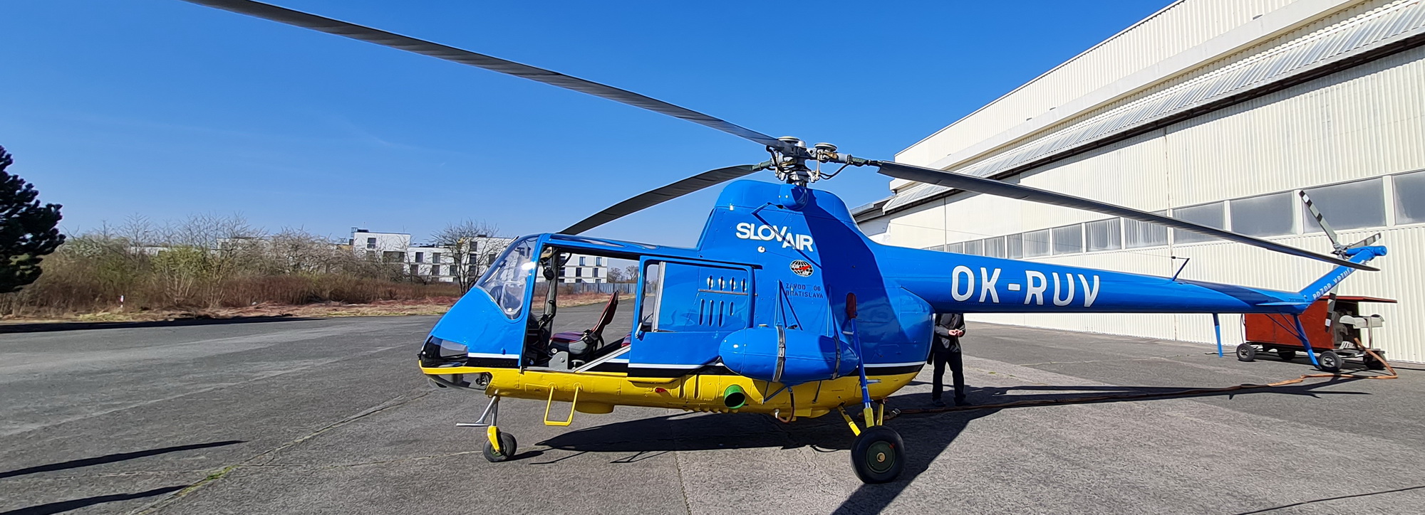 Slavnostní předání vrtulníku se odehrálo před halami státního podniku LOM PRAHA, příjemnou atmosféru a krásu stroje zářícího modrou i žlutou barvou ještě umocnilo jarní počasí s rovněž azurově modrou oblohou. Renovace vrtulníku v podniku LOM PRAHA je dalším příkladem intenzivní a dobré spolupráce této firmy s Vojenským historickým ústavem Praha. V roce 2021 převzal VHÚ po renovaci v LOM PRAHA hned dva letouny: Aero L-29 Delfín a cvičný bitevník Avia/Iljušin Il-10 (viz ZDE).