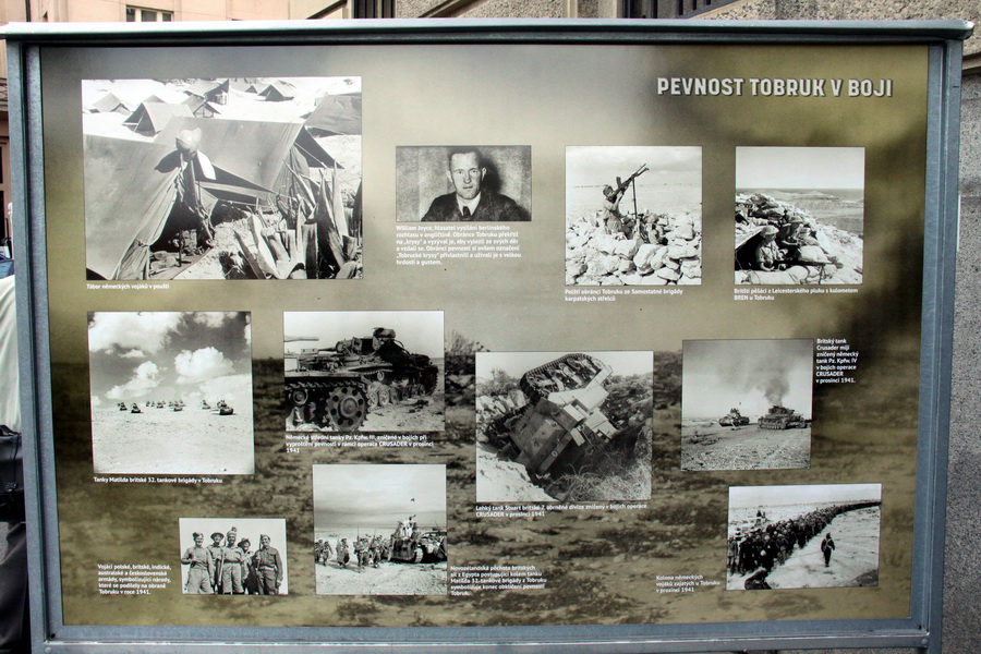Vojenský historický ústav Praha připravil pro plochu před Generálním štábem Armády České republiky na pražském Vítězném náměstí venkovní panelovou výstavu Tobruk - příběh pěšího praporu, která je věnována bojům našich vojáků během druhé světové války v severní Africe. Vernisáž výstavy, jejímž autorem je historik VHÚ Tomáš Jakl, se konala v úterý 19. října 2021. V těchto dnech si připomínáme 80. výročí začátku bojů o Tobruk, jichž se Čechoslováci účastnili.
